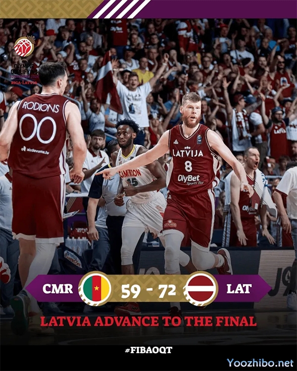 24直播网讯 07月07日讯 巴黎奥运会男篮落选赛拉脱维亚赛区半决赛,拉脱维亚72-59战胜喀麦隆。