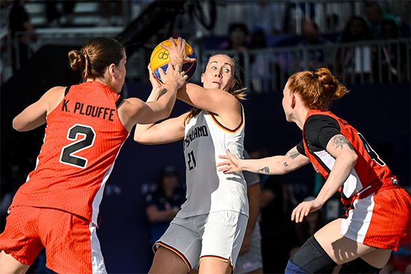 24直播网8月6日讯 奥运会女子三人篮球进入到了半决赛的争夺,德国三人女篮和加拿大三人女篮展开对决,德国在小组赛中拿到6胜1负的战绩排在第一直接晋级,加拿大则在附加赛中力克澳大利亚拿到半决赛名额。比赛开局格雷纳赫和凯西-波什相继命中远投为各自球队拿分拉开序幕,随后双方攻防节奏很快,加拿大短短2分钟里就领到3次犯规,不过加拿大没有受到影响反倒是连着冲击篮下得手拉开4分优势占据主动。后半段加拿大犯规上来问题逐渐显现,德国利用罚球和冲击篮下的不断抢分送出5-0并依据反超比分。末段双方持续拉锯悬念保留到最后,状态神勇的格雷纳赫成为英雄站出来连拿3分重新取得领先,最后又打入关键进球上演绝杀。最终,德国女篮16-15力克加拿大杀入决赛,他们的争金对手是西班牙,加拿大则和美国争夺铜牌。