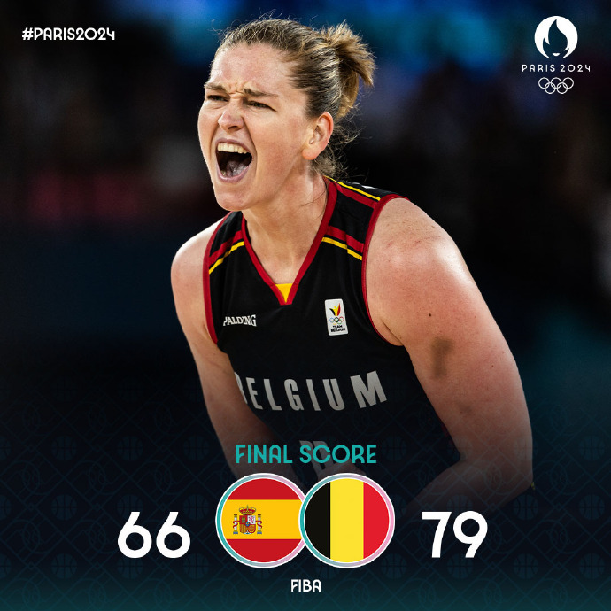 末节,西班牙女篮阿尔巴-托伦斯拿下4分,比利时女篮爱玛-梅斯曼拿下4分,最终西班牙女篮66-79不敌比利时女篮