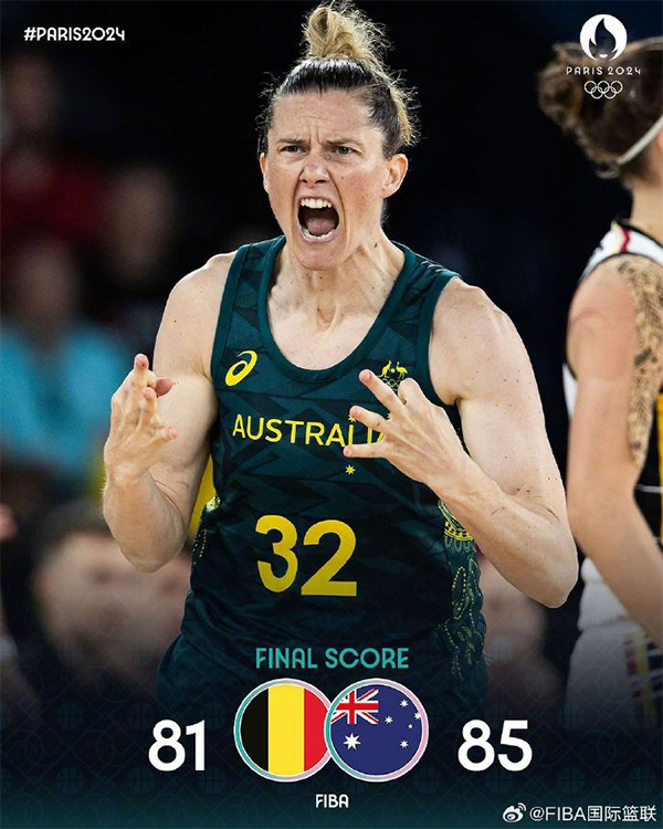 澳大利亚女篮85-81战胜比利时夺铜牌 马格贝戈超神30+13 范卢26+11