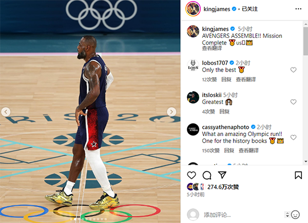 詹姆斯领衔美国男篮奥运五连冠,晒照庆祝