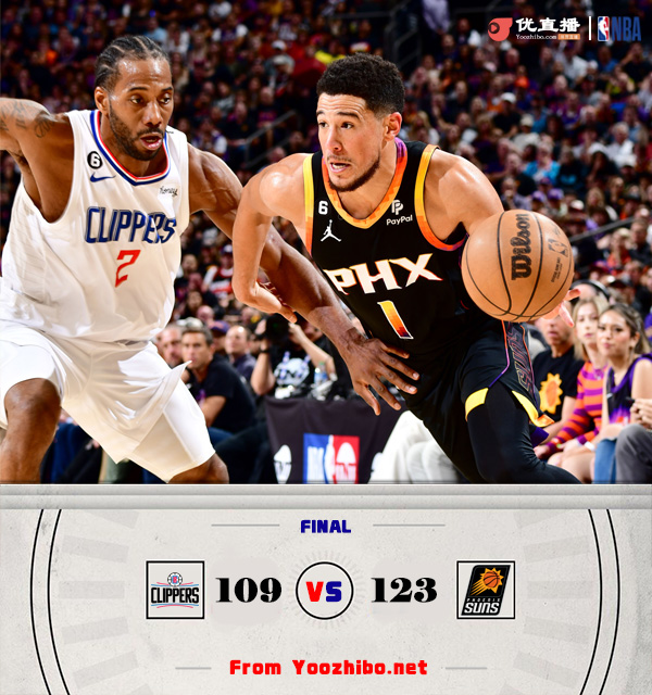 24直播网 4月19日讯 NBA季后赛首轮第二场对决,太阳主场继续迎战快船,双方首场季后赛,威少最后时刻一封盖加一球权帮助快船以下克上、先下一城,本场比赛佩恩继续缺阵。比赛上来,快船就外线接连3记三分打出一波11-2进攻高潮,好在太阳依靠火热的中投手感给出回应,小卡连续防成杜兰特,进攻端有攻有传帮助快船建立主动权,次节快船替补席多点开花拉开双位数领先,艾顿接连中投止血,随后威少里突外投连续取分,杜兰特中投几乎一个不丢强势回应带队追平比分。下半场,太阳上来就一波6-0建立领先,并开始包夹小卡,布克几乎弹无虚发单节轰下18分帮助太阳保持住主动权,末节快船上来进攻端还是受阻,太阳抓住机会将分差拉开至双位数,随后保罗接连中距离牢牢掌握住10分左右领先,最终太阳123-109逆转快船,总比分扳成1-1。