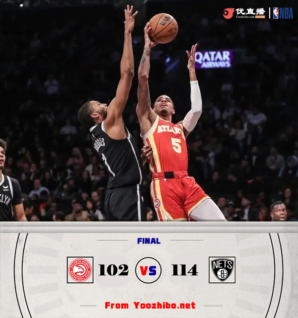 24直播网3月3日讯 NBA常规赛,篮网主场迎战老鹰。篮网东部第十一,老鹰东部第十。上半场,老鹰反客为主率先发力,连中三分取得两位数领先,篮网连投带罚拿分追赶,次节老鹰连中三分重获两位数优势,布里奇斯挺身而出单节拿到15分帮助球队迅速缩小分差,半场战罢老鹰62-60领先篮网。下半场,篮网率先发力打出15-2反超比分,老鹰连投带罚拿分止血,末节篮网持续发力扩大优势,老鹰大势已去无力回天。最终,篮网114-102击败老鹰,主场过关。