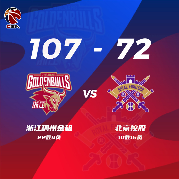 CBA常规赛继续进行,领头羊浙江迎战北控,北控近期惨遭连败,目前以10胜15负暂列联赛倒数第5位,浙江上场爆冷不敌天津,目前仍以21胜4负继续领跑。此役北控新外援布里恩-艾伦上演首秀。比赛开打后双方状态稍显慢热,中段北控内线率先发力,邹雨宸和王俊杰先后取分,吴前连投带罚及时回应,首节结束时北控暂时领先1分,次节回来,吴前延续火力单节独得12分,浙江开局阶段一举反超,中段双方你来我往继续缠斗,但末段北控进攻再次断电,浙江一波9-0拉开比分,半场战罢,浙江反超10分。下半场回来,北控进攻依旧低迷,陆文博找到手感连中三分,末段浙江再度发力轰出15-2攻击波,三节结束后浙江已经领先30分,末节上来,浙江早早换上替补,全员发力的他们延续火力再度打出13-2小高潮,双方分差越拉越大,最终浙江107-72狂胜北控。