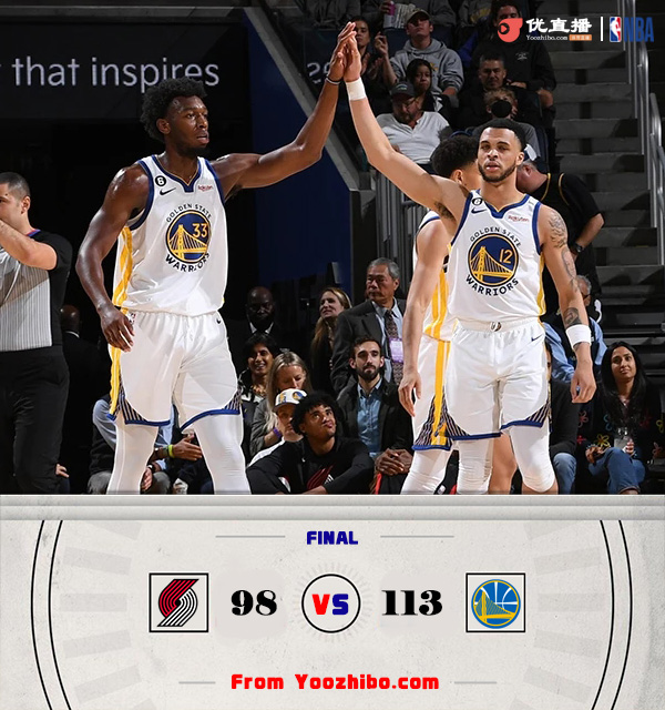 勇士:穆迪20分3篮板,J-格林20分8篮板,怀斯曼18分7篮板2助攻,库明加10分3篮板,斯潘塞11分5篮板4助攻,罗林斯12分5助攻,A-兰姆8分5篮板,迪文岑佐2分7篮板10助攻3抢断。