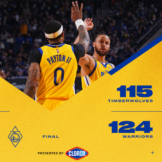 NBA常规赛继续进行,勇士主场迎战森林狼。勇士近来状态回暖,已经拿到了三连胜,目前稳居联盟第二。森林狼随着赛季的深入也越打越成熟,现在排在西部第七。一开场,森林狼连中三分开局8-0领先,后半段勇士奋力反击,频频外线开火将比分扳平,首节结束双方战成29平。次节比赛,前半段双方依旧难分伯仲,森林狼凭借两波9-2的攻势稍稍取得领先,半场战罢森林狼61-57领先4分。易边再战,勇三疯如期而至,勇士内外开花不断打出进攻高潮,牢牢占据场上主动,三节打完勇士握有14分领先。拉塞尔因伤退出比赛。第四节,森林狼奋力反击一度将分差追到只剩6分,水花连中三分稳住局势,此后勇士稳扎稳打将优势保持到了最后。最终,勇士轻取森林狼,取得4连胜。