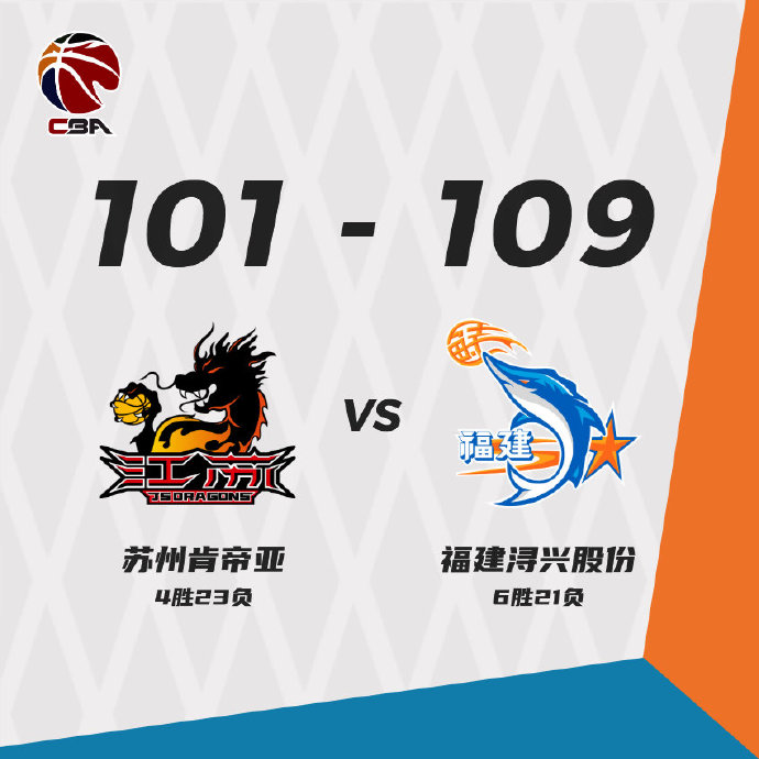 CBA常规赛江苏对阵福建,两支球队目前排名都在积分榜下游,江苏近期也是遭遇4连败。开场后两队就在外线展开较量,福建靠着高登、李江淮和陈林坚三人的发挥逐渐取得领先。第二节高登和陈林坚带领福建继续发动攻势,不过江苏依靠不断冲击内线没有让分差继续拉大,上半场福建59-46领先。第三节史鸿飞频频砍分一度帮助江苏将分差缩小到个位数,但高登得分能力太强,在他的发挥下福建再次拉开比分。第四节江苏再次发起反扑一度追到只落后5分,但福建外线两记三分浇灭江苏反扑气焰,最后时刻高登遭到驱逐,最终福建109-101送给江苏5连败。