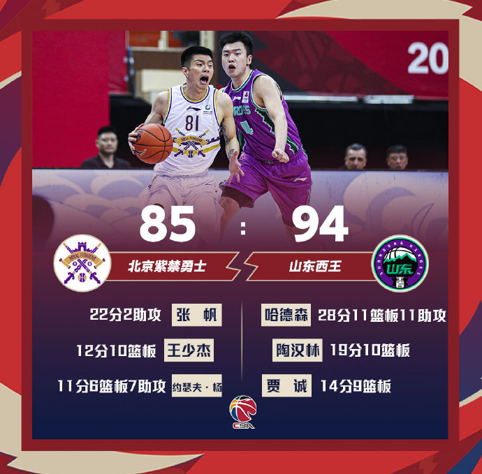 今日CBA常规赛,山东迎战北控。山东目前25胜20负,排名积分榜第7,北控则遭遇2连败,22胜23负排名积分榜第12。比赛开始,山东开局打出一波8-2,但随着北控外线逐渐找到手感,双方分差逐渐缩小,首节战罢,山东领先北控3分。次节上来,山东迅速得分扩大领先优势,但随后北控打出一波9-0小高潮将比分扳平,半场战罢,山东44-42领先北控2分。易边再战,双方始终保持胶着,山东67-62领先北控5分进入末节。最后一节前半段,山东始终压制北控保持领先,但随后北控抓住山东失误将比分扳平,依靠哈德森最后阶段关键发挥,最终山东94-85战胜北控。