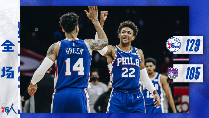 24直播网3月21日讯 NBA常规赛76人主场对阵国王,76人目前仍旧占据东部榜首,不过76人多名主力缺阵,国王近来还不错取得2连胜。开场后格林上来就连中3个三分为76人吹响进攻号角,虽然希尔德手感也不错频频砍分,但在哈里斯带领下76人全队火力全开迅速拉开比分,首节他们就建立起21分优势。第二节希尔德手感仍旧火热接连命中三分,但76人整体状态出色,米尔顿和哈里斯接连砍分,上半场76人73-52仍旧大比分领先。下半场回来76人率先发力一度领先到34分,虽然此后国王又追回一些分数,但无奈分差太大,最终76人129-105大胜国王。