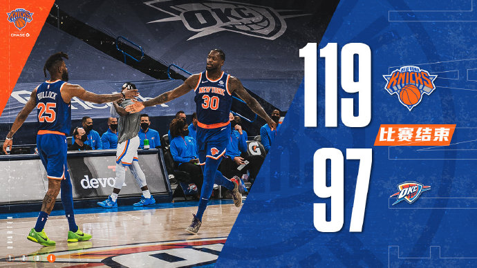 [微博全场集锦] 兰德尔26+12+12 巴雷特32+5 尼克斯大胜雷霆