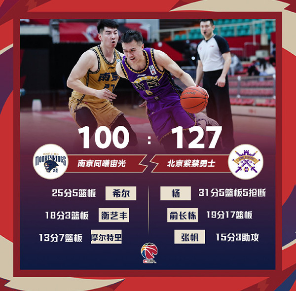 北控(18-17):俞长栋19分17板、约瑟夫-杨31分5板3助5断、王少杰14分5板2助3断、张帆15分3助、哈里森15分4板4助2断、孙悦5分6板9助3帽、侯逸凡12分、李根9分2助、李佳恒2分2助
