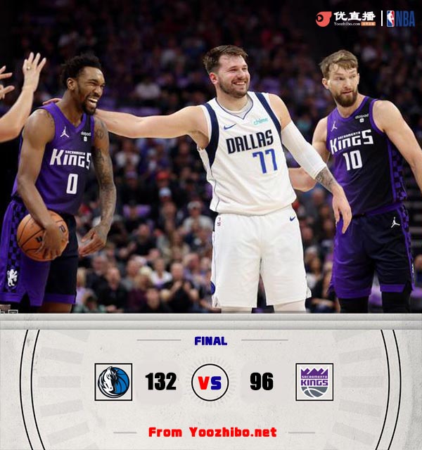 24直播网3月27日讯 NBA常规赛,国王主场迎战独行侠,目前两队都是42胜29负,国王西部第6位,独行侠西部第7位,本场关键卡位战对两队很是关键。比赛上来,双方就迅速进入状态展开对攻战,东契奇有攻有传继续撑起球队进攻,而华盛顿外线火热弹无虚发,小萨博尼斯也是继续全面发挥,国王全民皆兵能回应,首节独行侠领先3分,次节东契奇开启得分模式,里突外投半节就上双,福克斯也手感回暖给出回应,双方展开拉锯战,半场独行侠继续领先5分。下半场,欧文上来开始发力,里突外投连砍10分帮助球队一波小高潮拉开双位数领先,随后独行侠进攻端持续发力,华盛顿里突外投连续取分,独行侠瞬间拉开20分以上领先,末节欧文外线连续发炮继续扩大领先,国王外线始终不开,最终独行侠132-96大胜国王,拿到5连胜同时升至西部第6位。