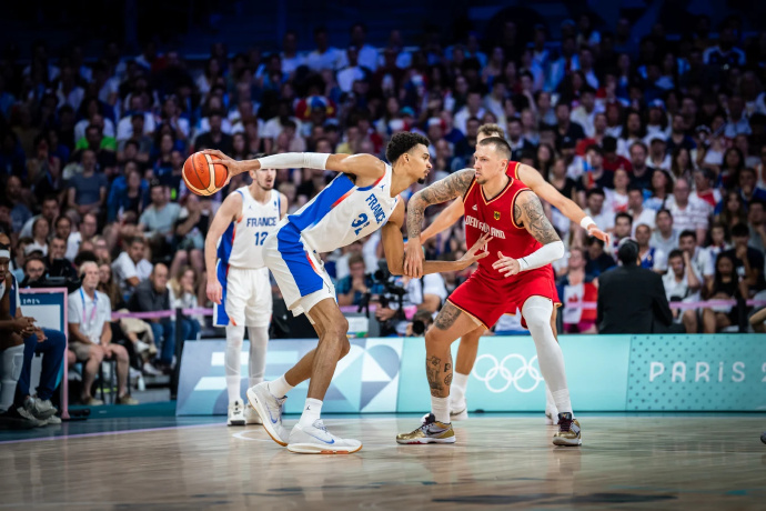 24直播网北京时间8月3日讯 奥运男篮小组赛B组,法国对阵德国。比赛开始,法国连中三分占据主动,德国内外开花迅速回应,德国一波8-2领先6分结束首节。次节德国轻松将分差拉开到两位数,法国进攻端完全哑火,施罗德和小瓦格纳联手带队轰出16-2的进攻高潮,半场战罢德国48-27领先法国21分。易边再战,双方围绕20分的分差展开争夺,富尼耶和巴图姆相继命中三分,小瓦格纳隔扣2+1强势回应,末节法国大举反击完成11-0的攻击波迅速迫近比分,邦加三分破荒,德国及时找回状态,文班连中三分也为时已晚。最终,德国85-71击败法国,锁定小组第一。