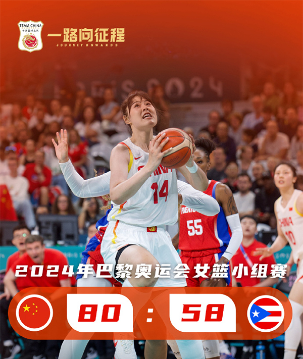 北京时间8月3日讯 奥运女篮小组赛A组,中国女篮今日对阵波多黎各女篮,由于前两战中国女篮均输球,此役只有赢球才能保留晋级希望。比赛上来,波多黎各率先命中一记三分,随后中国队就打出一波7-0的小高潮取得领先,整个第一节中国队只让对手拿到11分,次节中国队又是连拿七分将分差拉开到两位数,之后两队一直围绕着十分左右的分差展开拉锯,半场结束时中国队领先11分;下半场回来,中国队继续占据着场上的主动权,防守端让对手的得分连续三节低于20分,末节场上分差已经达到了二十分,比赛彻底失去悬念,最终中国队大胜波多黎各迎来首胜,目前小组排名第三,净胜分-1。