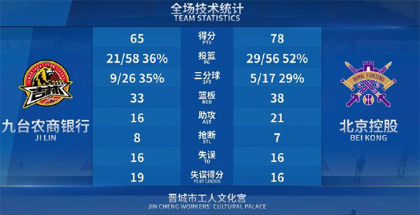 吉林:李安6分4篮板、崔晋铭10分、姜宇星9分5助攻、吴昌泽11分5篮板、陈冠中8分、代怀博5分。