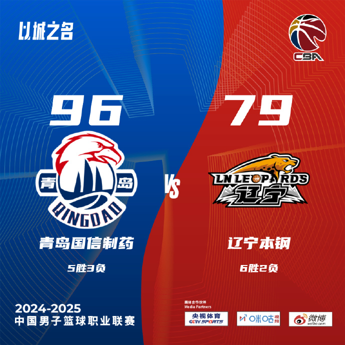24直播网10月28日讯 CBA常规赛,青岛主场迎战辽宁,本场比赛赵继伟因伤缺阵。比赛开始,双方开局都比较慢热,辽宁打了半节得分没上双,青岛外线多点开局建立双位数领先,辽宁始终没有进攻端手感,首节青岛领先15分,次节辽宁上来打出11-0直接追上比分,双方展开拉锯战,韦瑟斯庞里突外投稳住局势,弗格有投有传继续追分,半场辽宁追到差4分。下半场,米切尔连砍6分,青岛重新拉开比分,又是弗格站出来止血,辽宁一度追到差2分,末节辽宁继续追分,王睿泽接连三分命中,韦瑟斯庞里突外投连砍6分稳住局势,青岛始终保持两球以上领先,最终青岛96-79力克辽宁。