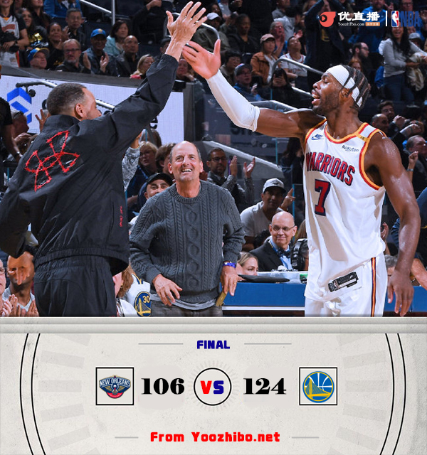 24直播网10月30日讯 NBA常规赛继续进行,勇士坐镇主场迎战鹈鹕。库里上一场受伤离场并缺席本场比赛,同事维金斯和梅尔顿也缺阵。首节之争缺少核心的勇士完全不在状态单节仅得到14分,鹈鹕在双核锡安、英格拉姆带领下连续打出反击首节就拿到17分领先;次节场面迎来反转,首节茫然无措的他们在这一节突然暴走回敬30-14的攻势一举追上并带着4分劣势进入下半场。休息归来双方短暂对攻但勇士的攻势更加持久,节中他们抓住对手熄火的机会送出22-8的攻势实现反超,随后越战越勇的他们在第四节初再送7-2的攻势拉开两位数分差,这之后勇士寸土不让一直牢守两位数领先保持到最后。最终,勇士击败鹈鹕避免连败。