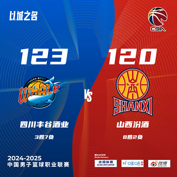 24直播网11月3日讯 CBA常规赛,四川对阵山西四川最近遭遇2连败,山西则是状态不错取得一波4连胜。开场后山西利用刘传兴在内线的优势以及双外援的发挥取得领先,四川则靠着外援的发挥追上比分并在第一节后半段跟山西打得有来有回。第二节山西以7-0开局巩固优势,虽然四川努力追分,但山西外线找到手感接连命中三分,他们单节轰下40分在半场结束时建立起16分优势。下半场回来场上局势风云突变,四川全面开花一路追分,并且在第四节延续攻势下起三分雨,以一波16-2的高潮将比分反超。原帅和古德温联手回敬一波10-0 夺回领先。关键时刻萨姆纳连连砍分并投进锁定胜局的三分,最终四川123-120逆转终结山西4连胜。