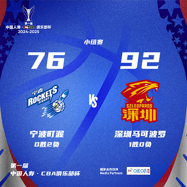 24直播网11月13日讯 CBA俱乐部杯惠州赛区,宁波对阵深圳。一开场,双方势均力敌,比分始终紧咬,次节马奇开始发力,内外开花连续拿分帮助宁波占据主动,周鹏上场带队反击,深圳完成12-2的攻击波以44-39领先结束上半场。下半场,深圳占得先机打出10-0扩大优势,宁波内外开花努力追赶,末节深圳稳扎稳打保持优势,宁波苦苦追赶无果。最终,深圳92-76击败宁波。