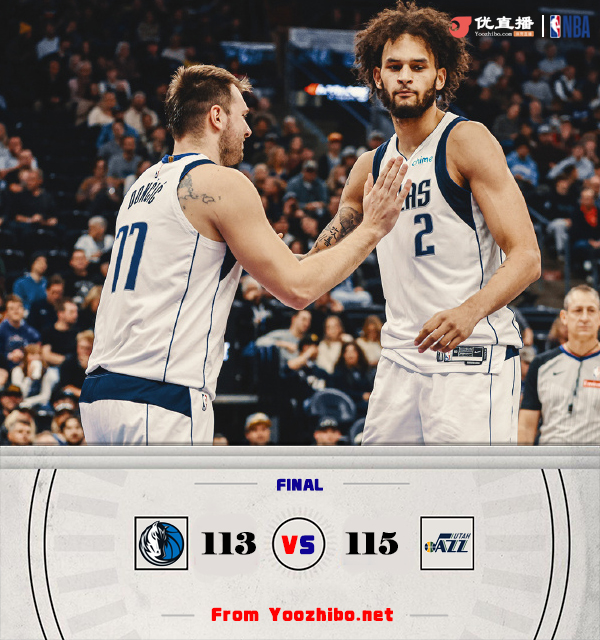 24直播网11月15日讯 NBA常规赛继续进行,爵士主场迎战独行侠,此役欧文因为右肩拉伤缺阵,赛前独行侠遭遇三连败,目前5胜6负位列西部第12位,爵士2胜8负西部垫底。首节开打后双方短暂试探,中段东契奇和格莱姆斯连中三分,独行侠一度拉开比分,但科林斯连投带罚及时回应,首节结束时独行侠领先1分,次节回来,两队延续火力展开对攻,东契奇连续杀伤罚球涨分,克莱和格莱姆斯外线续上火力,爵士众将多点开花紧咬比分,半场战罢,独行侠保持3分优势。易边再战后爵士延续进攻势头,马尔卡宁突然发力连续取分,率领爵士一波9-0实现反超,末段科林斯连投带罚率队扩大优势,三节结束后爵士反超14分,末节上来,马绍尔突然爆发率独行侠不断追分,决胜时刻克莱飚中大心脏三分,但东契奇出现致命漏人,克拉克森妙传科林斯轻松扣进空篮,马绍尔绝杀三不沾,最终爵士115-113送独行侠四连败。
