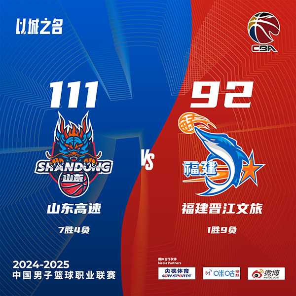 北京时间11月30日讯 CBA常规赛,山东今日迎战福建,前者在首阶段两连胜收官,后者则是不敌辽宁,首阶段只赢下一场比赛。比赛上来,福建率先进入状态取得领先,之后两队分别打出进攻高潮,场上也是多次交换领先,不过首节末段福建的命中率出现下滑,山东逐渐占据主动,次节福建完全落入下风,在长时间的得分荒里被山东轰出一波15-0的攻势,半场结束时分差为14分;下半场回来,福建有追分的势头,但山东再用10-0的小高潮给出回应,分差反而被扩大到二十分以上,到了末节福建的情况没有任何好转,比赛也是早已失去悬念,最终山东大胜福建迎来三连胜。