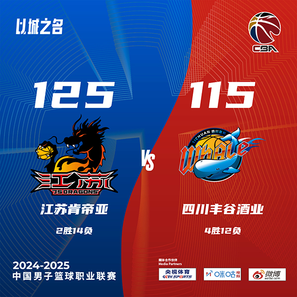 北京时间12月11日讯 CBA常规赛,江苏主场迎战四川。江苏1胜14负,四川4胜11负。上半场,江苏率先发力打出14-6的开局,四川内外开花努力追赶,次节双方大打对攻,互相不设防,富兰克林高效输出,萨姆纳和马里奇联手带队给出回应,半场战罢江苏74-62领先四川。下半场,江苏命中率有所下降,双方围绕10分左右的分差展开拉锯战,末节关键时刻江苏稳扎稳打保持优势,四川苦苦追赶无果,最终,江苏125-115力克四川。