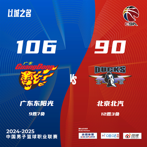 北京时间12月12日讯 CBA常规赛,广东对阵北京,广东上场比赛击败北控,北京则是输给山西,本场比赛胡明轩和曾凡博缺阵。开场后莫兰德和徐杰一内一外发挥出色帮助广东取得领先,北京进入状态较慢,广东接着利用外线三分将分差拉大。杰曼接连砍分努力为北京追分,黄荣奇扔进超远压哨三分。第二节上来吉伦沃特内外开花带领广东率先打出攻势,北京进攻端表现平平,场上分差一度被拉大到27分,北京半场结束前用两记三分稍稍止血。下半场回来虽然广东进攻效率下降,但北京也没能掀起有效反扑,分差始终在20分左右拉锯,最后一节北京努力追分依旧未果,最终广东106-90北京取得2连胜,北京遭遇2连败。