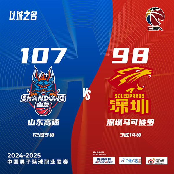 北京时间12月13日讯 CBA常规赛,山东对阵深圳,山东上场比赛击败北控,深圳最近遭遇2连败。开场后山东率先打出攻势以7-0开局,紧接着深圳回敬一波8-0追上比分,两队陷入僵持。克里斯连续强攻篮下得手,深圳这边外援毫不示弱也连续拿分回应,依靠内线的强势发挥,山东上半场领先4分。下半场,两队经过短暂的僵持后,依旧是山东率先打出攻势一度建立起11分优势,但随后深圳立马掀起反扑又将比分追上。第四节山东再次掀起攻势建立领先,这次他们没有给深圳追上比分的机会,最终山东107-98击败深圳取得2连胜,深圳遭遇3连败。