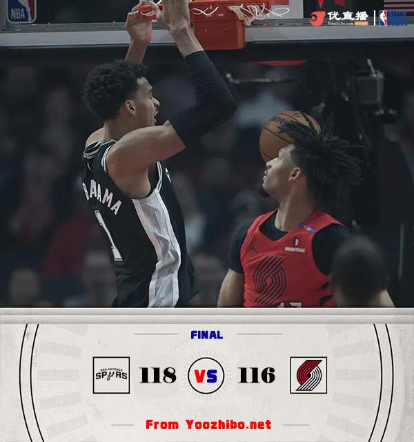 [文班罚球绝杀] 最后1分钟太刺激!马刺三度领先开拓者三度追平 最后文班罚球绝杀