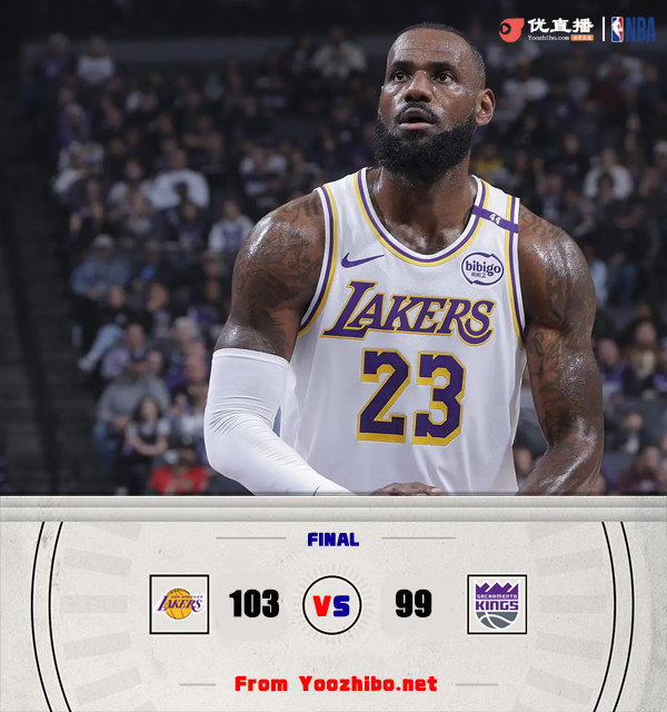 北京时间12月22日讯 NBA常规赛,湖人客场挑战国王。湖人近期2连胜,以15胜12负排在西部第七,国王13胜15负暂列西部倒数第四。比赛开始,詹姆斯率先发力,连突带投单节独得12分率队取得领先,福克斯连投带罚帮助国王咬住比分,次节詹姆斯依旧神挡杀神,国王内外开花努力追赶,半场战罢湖人56-53领先国王。易边再战,双方陷入拉锯战,比分交替领先,末节湖人持续发力取得10分领先,福克斯和小萨联手拿分顽强咬住,关键时刻浓眉两罚不中,但八村塁拍出前场篮板后里夫斯两罚都有,湖人103-99险胜国王。