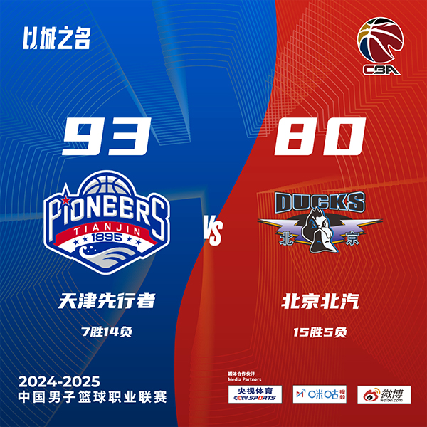北京时间12月23日讯 CBA常规赛,北京客场对阵天津。北京15胜4负高居联赛第四,天津8连败目前6胜14负排在倒数第四。周琦本场缺阵。比赛开始,天津率先发力,内外开花打出17-5的开局,北京不断冲击内线频频得手努力追赶,次节双方围绕两位数的分差展开拉锯战,天津多点开花扩大优势,北京无力招架,半场战罢天津49-33领先北京。易边再战,北京奋力反击一度将分差迫近到只剩7分,天津连投带罚稳住局势,末节北京一波9-0迅速缩小分差,林庭谦挺身而出连得6分率队打出14-2的攻击波强势回应,北京苦苦追赶无果。最终,天津93-80击败北京,结束了自己的8连败。