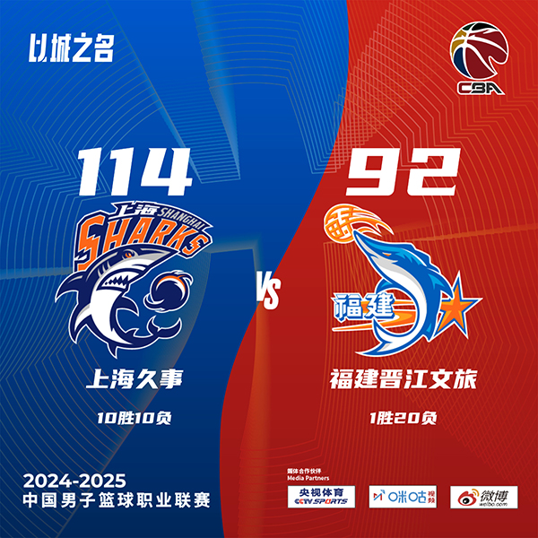 北京时间12月25日讯 CBA常规赛,上海主场迎战福建,上海目前8连胜,9胜10负排在第13位;福建则是12连败,1胜19负联盟垫底。比赛开始,福建反客为主率先打出不错开局,杨手感一般,但其他3位外援状态不错,而上海则是靠布莱德索串联,李添荣替补上来里突外投助队一度反超,次节双方命中率继续下降,半场福建0助攻,李添荣三分还能进,洛夫顿接连内线强打取分帮助上海半场领先4分。下半场,福建进攻端突然断电,布莱德索继续串联全队,李添荣接连三分继续命中,洛夫顿连续内线强攻,上海一波19-1超级攻击波直接领先到20分以上领先,末节上海11-2进攻波继续拉开比分,约瑟夫-杨接连追分但无奈分差太大,最终上海114-92大胜福建,豪取9连胜同时送对手13连败。