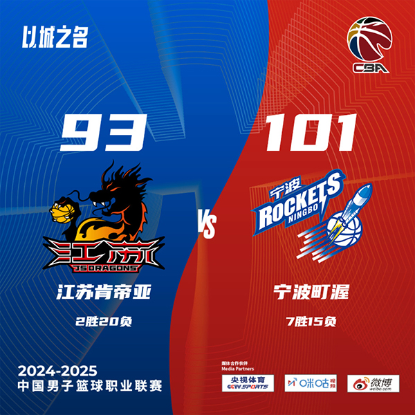 北京时间12月25日讯 CBA第二阶段赛事继续开打,宁波和江苏今日迎来一场对决,目前宁波遭遇6连败,江苏则遭遇5连败。首节之争双方状态相当,这一节双方最大分差不过4分且拉回拉锯僵持,次节场面依旧,打了半节时间双方也还是平手状态,不过江苏的被动来自于他们罚球线上,整个上半场他们罚丢了10个罚球,不过后半段江苏进攻端表现更加出彩以一波9-0的攻势占据上方并奠定半场6分领先。休息归来江苏一度拉开两位数领先但无法控制领先,宁波不断制造杀伤罚球紧追比分;末节宁波虽然一直被动追分但最后时刻看到曙光,罗凯文两记三分帮助宁波实现反超,江苏读秒阶段又出现致命失误并让马奇轻松拿分。最终,宁波逆转江苏结束6连败,江苏的连败则拉大至6场。