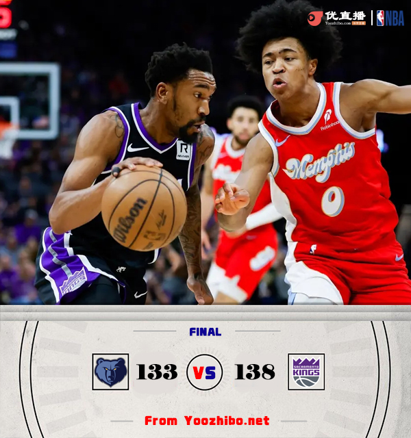 24直播网1月4日讯 NBA常规赛,灰熊客场挑战国王。灰熊23胜11负,国王15胜19负。上半场,双方开场便大打对攻,国王里突外投拿分,灰熊多点开花给出回应,蒙克和莱尔斯手感火热,国王首节轰下46分领先灰熊14分,次节灰熊火力更猛,韦尔斯和小贾伦-杰克逊联手带队缩小分差,灰熊次节也砍40分,半场战罢国王76-72领先灰熊。易边再战,国王9-0扩大优势,韦尔斯单节11分帮助灰熊咬住比分,末节双方争夺陷入白热化,福克斯击中小皮蓬头部被吹一级恶意犯规,蒙克连得8分带队取得两位数领先,灰熊苦苦追赶无果。最终,国王138-133力克灰熊,主场过关。