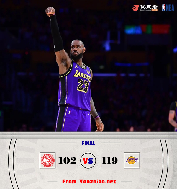 北京时间1月4日讯 湖人今日迎战老鹰,前者上场比赛战胜开拓者,后者则是输给掘金,此役南斯缺战。比赛上来,两队打得比较胶着,不过湖人随后利用一波8-0的小高潮取得领先,但老鹰一直紧咬比分没有让分差拉开,次节特雷-杨和海斯纠缠各吃技犯,克内克特替补上来单节拿下11分,需要注意的是湖人仅一节半时间就喊掉了四次暂停,好在是效果还不错,半场结束时湖人领先8分;下半场回来,湖人一直掌握着场上的主动权,到了末节分差也是达到两位数,詹姆斯更是连续得分不给老鹰任何机会,最终湖人轻取老鹰迎来连胜。