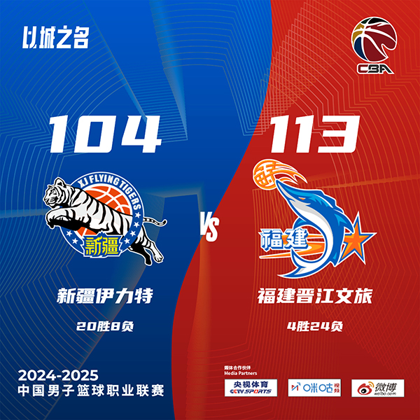 北京时间1月10日讯 CBA常规赛,新疆主场迎战福建。新疆20胜7负排在联赛第四,福建3胜24负垫底。一开场,齐麟高效输出,邹阳内外开花还以颜色,次节皮特森连中三分将分差拉开到两位数,福建多点开花迫近比分,路易斯-金三分一度反超,新疆三分3连击打出12-3以63-57领先结束上半场,下半场,双方继续缠斗,比分始终紧咬,曾凌铉连中三分带队反超,末节福建稳扎稳打保持优势,新疆连投带罚苦苦追赶无果。最终,新疆爆冷主场104-113不敌福建。