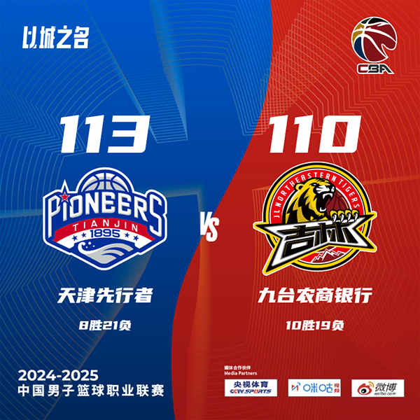 北京时间1月11日讯 CBA常规赛,天津主场迎战吉林。天津7连败,以7胜21负排在联赛倒数第三,吉林3连败,以10胜18负排在联赛第十三。上半场,天津率先发力,多点开花取得两位数领先,吉林不断冲击内线连投带罚拿分追赶,大卫-詹姆斯火力全开,半场狂砍31分帮助天津65-62领先吉林结束上半场。下半场,大卫-詹姆斯延续火力,天津持续输出将分差拉开到两位数,末节天津命中率下降,吉林展开反击将分差迫近到只剩5分,刘天意关键两罚不中,拉维特罚球杀死比赛。最终,天津113-110力克吉林,结束了自己的7连败,