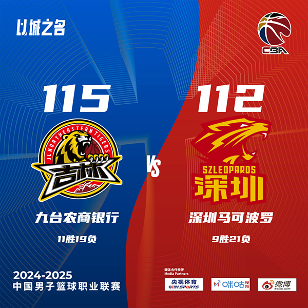 北京时间1月13日讯 CBA常规赛,吉林主场迎战深圳。吉林近期4连败,以10胜19负排联赛第13,深圳9胜20负紧随其后。上半场,深圳率先发力,三分6中6迅速取得20分以上领先,次节风云突变,吉林轰出18-2一度反超比分,贺希宁连续拿分稳住局势,半场战罢深圳67-62领先吉林。下半场,深圳率先发力扩大领先,琼斯连投带罚帮助球队顽强咬住,末节王浩然、卢鹏羽、鲁吐布拉先后犯满离场,吉林轰出14-0确立优势,贺希宁连投带罚帮助球队扳平比分,关键时刻姜伟泽3+1完成绝杀。最终,吉林主场25分逆转深圳,结束了自己的4连败。