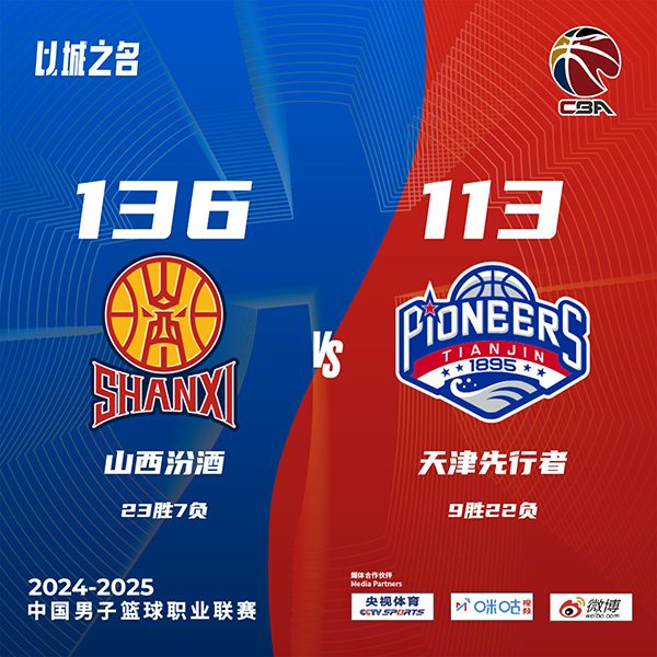 24直播网讯 北京时间1月15日讯 CBA常规赛,山西主场迎战天津,山西目前22胜7负高居第3位,天津则是9胜21负排在第15位。比赛开始,双方都比较快得进入状态,天津全面皆兵,首发五虎除大卫-詹姆斯皆有得分入账,而山西则是古德温里突外投撑起进攻,山西首节领先4分,次节山西替补开始发力,张宁上来里突外投连砍12分,大卫-詹姆斯连续三分止血,但山西外线多点开花直接在半场拉开20分以上领先。下半场,拉维特苦苦支撑带队追分,但山西多点开花能回应,双方围绕着20分左右分差展开拉锯战,末节迪亚洛里突外投继续扩大领先,分差一度来到近30分,最终山西136-113轻取天津。