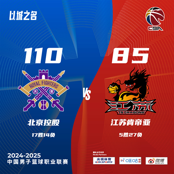 北京时间1月17日讯 CBA常规赛激战正酣,北控主场迎来江苏的挑战,江苏苦吞4连败,5胜26负继续排在联赛倒数第二,北控德比战大胜北京后,16胜14负位列联赛第10位。首节开打后双方稍显慢热,江苏外援汤普森率先发力,连投带罚单节狂揽14分,张帆联手特莱斯短暂回应,首节结束时江苏领先5分,次节回来,北控逐渐找到进攻节奏,萨林杰予取予求单节贡献14分,里勒续上火力,两人联手率队连续轰出得分高潮,半场战罢,北控反超确立9分优势。短暂休整后双方拉开架势火热对攻,北控延续状态牢牢占优,末段北控再度发力,三节结束后北控已经领先19分,末节上来,两队调兵遣将,江苏进攻乏力追分无望,比赛提前失去悬念,最终北控110-85大胜江苏送对手5连败。