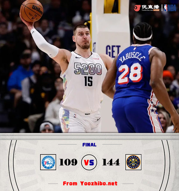 北京时间1月22日讯 NBA常规赛,掘金主场迎战76人。掘金26胜16负稳居西部第四,76人15胜26负排东部第十一,近期更是遭遇6连败。恩比德继续缺阵。一开场,双方短暂相持,随后掘金内外开花一举取得两位数优势,乔治三分止血,次节双方围绕10分左右分差展开拉锯战,掘金连中三分,马克西内外开花顽强咬住,半场战罢掘金77-67领先76人。下半场,掘金延续火力,多点开花将优势扩大到20分以上,末节掘金稳扎稳打,76人大势已去无力回天。最终,掘金144-109大胜76人,送给对手7连败。