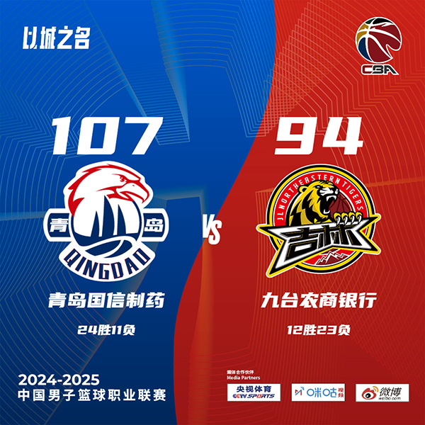 北京时间1月25日讯 CBA常规赛,青岛今日迎战吉林,前者上场比赛战胜四川,后者则是输给新疆。比赛上来,两队的进攻表现都不太好,半节时间得分均未上双,不过青岛随后在两分钟的时间里轰出一波11-0的小高潮拉开分差,首节末段到次节初,吉林连拿七分又追了回来,但随后他们就陷入到得分荒,青岛再打11-0建立起两位数的领先优势,半场结束时吉林落后13分;下半场回来,两队展开对攻,分差并没有发生太大变化,青岛始终握有十分以上的领先,末节吉林也没有再获得任何机会,最终青岛轻取吉林迎来连胜。