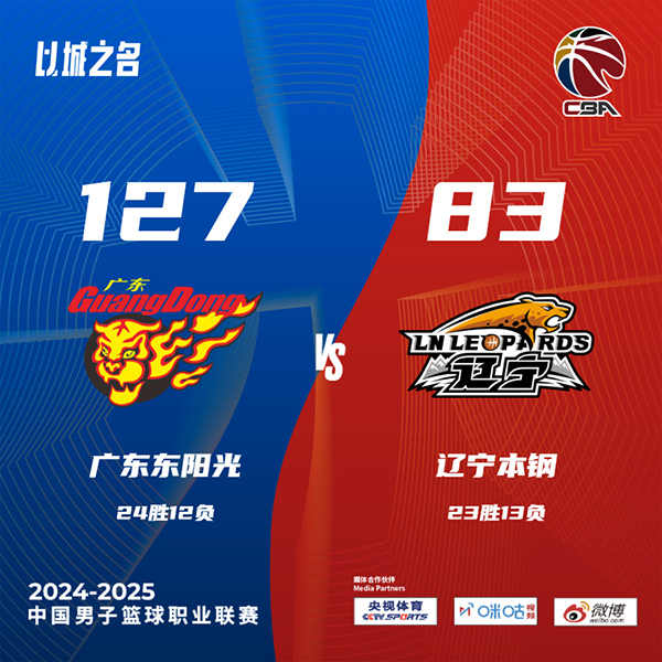北京时间3月5日讯 CBA常规赛,广东对阵辽宁,广东和辽宁目前分别排在联赛第九和第八,上场比赛两队都是取得胜利,本场比赛胡明轩复出。开场后广东率先打出攻势以21-6开局,徐杰表现积极,伯克更是状态火热内突外投不断砍分,赵继伟和威尔斯连续打出反击止血并且一路追分,贝兹利和吉伦沃特强攻内线帮广东再度将分差拉大到两位数。第二节辽宁先是连续通过罚球拿分,但杜润旺状态神勇,不仅空位三分机会把握住,还多次跟进攻筐得手,广东趁机将领先优势扩大到18分,随后辽宁努力追分,但无奈手感并不理想,赵继伟压哨大号两分命中。易边再战,广东外线手感依旧火热,上来一阵三分雨下继续扩大优势,辽宁进攻端打得艰难,老将韩德君在内线强攻勉强追分。最后一节广东依旧攻势连连,场上分差继续被拉大,比赛早早进入垃圾时间,最终广东127-83大胜辽宁。