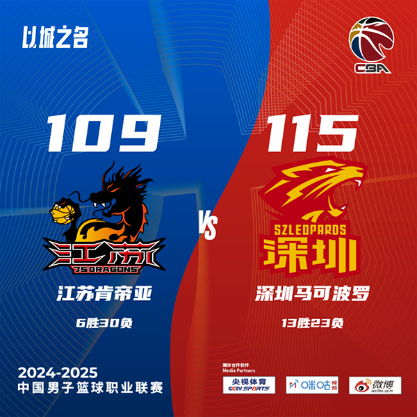 北京时间3月6日讯 CBA常规赛,江苏对阵深圳。江苏6胜29负排在联赛倒数第二,已确定无缘季后赛。深圳12胜23负排在第14。上半场,双方开场势均力敌,比分咬得很紧,富兰克林-杰克逊连续拿分带队完成13-4的攻击波取得领先,深圳内外开花迅速追赶,次节江苏火力更猛,富兰克林-杰克逊和阿奇-古德温联手带队重获两位数优势,半场战罢江苏73-58领先深圳。下半场,江苏命中率下降,周鹏带队不断迫近比分,末节周鹏补篮反超比分,双方争夺陷入白热化,李承耀出现违体犯规,周鹏稳定输出帮助球队保持4分优势,江苏发球5秒违例,最终,深圳115-109力克江苏。