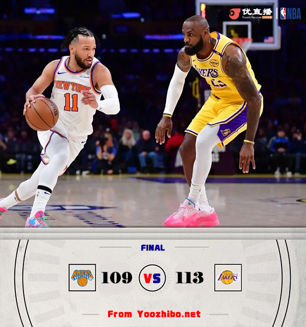 北京时间3月7日讯 NBA常规赛,湖人主场迎战尼克斯。湖人目前7连胜,39胜21负高居西部次席;尼克斯则是40胜21负东部第3。本场比赛,八村塁、古德温继续缺阵,里夫斯复出;唐斯也出战比赛。比赛开始,双方都迅速进入状态,布伦森和东契奇展开对飙,东契奇和詹姆斯接连喂饼杰米森,湖人8-0取得领先,但布伦森压哨中投再进追到差4分,次节湖人进攻端陷入停滞,阿努诺比外线弹无虚发单节轰下13分,尼克斯打出进攻高潮直接反超比分,詹姆斯连续突破回应,半场尼克斯反超9分。下半场,布伦森连续突破取分,尼克斯牢牢掌握住双位数领先,里夫斯终于命中首个运动战进球,克内克特压哨三分追到差8分,末节双方都是高强度防守,湖人给机会始终把握不住,文森特和詹姆斯接连底角三分命中,湖人8-0追到仅差1分,比赛进入白热化,文森特和詹姆斯又是接连3记三分终于反超比分,布伦森2+1再扳平,双方进入加时。加时赛,东契奇接连高难度中远投连砍5分,里夫斯三分也进,布伦森连续突破或造杀伤砍下6分后崴脚受伤还坚持罚球,海斯和詹姆斯接连罚球,阿努诺比关键加罚不中,最终湖人加时113-109险胜尼克斯,豪取8连胜。