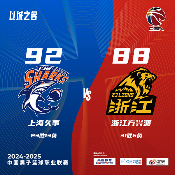 上海(23-13):布莱德索24分2板9助3断、王哲林19分13板1助4断、李弘权14分7板2助、洛夫顿11分12板3助2断、李添荣9分3板、威尔逊7分1板、刘礼嘉6分4板1助、刘铮2分1板2断、袁堂文2板1助、威廉姆斯1板1助。