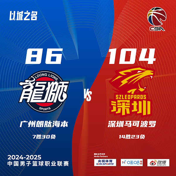 北京时间3月8日中国男子篮球职业联赛 常规赛,广州朗肽海本对阵深圳马可波罗。半场广州42-55深圳,最终广州86-104深圳。广州朗肽海本张兴亮16分4板3助,袁照耀12分5板1助;深圳马可波罗马凯尔-约翰逊24分4板9助,贺希宁23分4助。