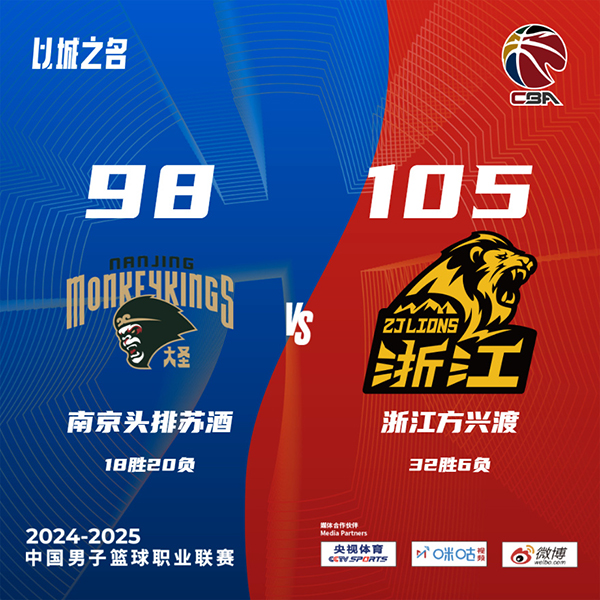 广厦(32-6):布朗38分6板5助2断、胡金秋22分8板3助、朱俊龙14分4板2助、赵嘉仁11分6板3助、奈特10分6板2断2帽、卡尔顿4分4板、赵岩昊4分2板1助、马扬诺维奇2分2板、林秉圣2板3助、吴骁1板。