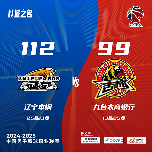 北京时间3月9日讯 CBA常规赛迎来东北德比,辽宁主场迎战吉林,辽宁目前24胜13负位列联赛第8,吉林13胜24负排在第14位。首节开打后两队你来我往比分紧咬,琼斯连投带罚不断取分,赵继伟联手韦伯外线回应,中段辽宁开始发力,首节结束时辽宁领先4分,次节回来,辽宁进攻突然陷入停滞,琼斯无人可挡单节狂揽17分,半场战罢,吉林反超领先7分。易边再战后辽宁突然发力一波10-2夺回优势,双方陷入鏖战比分紧咬,辽宁领先4分进入末节,末节决战,吉林连中三分拉回悬念,威尔斯内外结合稳住局势,赵继伟再中三分杀死比赛,最终辽宁112-99力克对手。