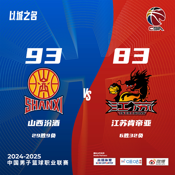 北京时间3月10日讯 CBA常规赛,山西今日迎战江苏,前者近来取得两连胜,后者则是遭遇三连败,比赛上来,山西两个外援各打一个都没有斩获,江苏先拿五分取得领先,整个第一节的绝大部分时间里江苏都占据场上优势,而山西只拿到18分,次节山西的表现依旧没有好转,迪亚洛更是多次扣篮砸飞,江苏逐渐将分差拉开到两位数,半场结束时山西落后12分;下半场回来,山西终于找回状态,他们连续完成抢断由布兰登-古德温得分,单节净胜16分完成反超,末节江苏虽然紧咬比分却始终无法再反超获得领先机会,最终山西力克江苏,迎来三连胜的同时也送给后者四连败。